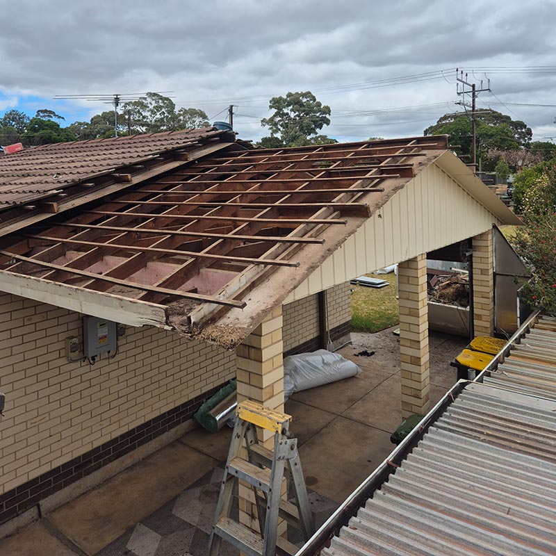 Old roofing is removed in sections and new sheets are installed to standard. Tile to Colorbond conversions include tie-down and strapping to manage wind uplift due to the lighter steel system.