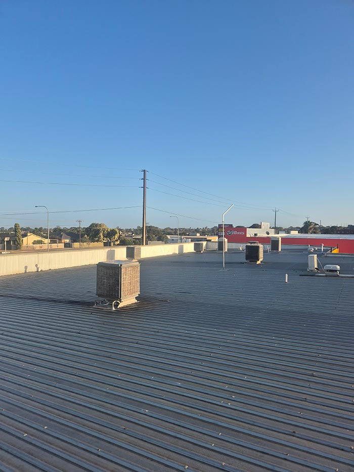 Edge protection or scaffold is arranged as part of the roof project. We prepare SWMS (Safe Work Method Statement) and coordinate crane or semi deliveries on commercial jobs where needed.